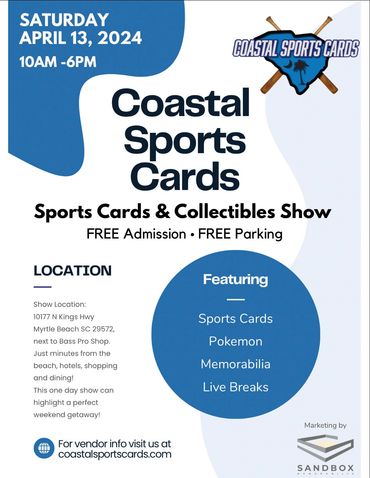 Coastal Card Fest is the ultimate collectibles experience—where the hobby comes alive. Dive into a high-energy show packed with live streaming, nonstop entertainment, surprise guest appearances, and endless tables of sports cards, TCG, comics, and so much more. Whether you’re a seasoned collector, a casual fan, or brand new to the scene, Coastal Card Fest brings the community together for unforgettable moments, exclusive finds, and the thrill of the chase—all under one roof. Don’t just collect it… experience it.