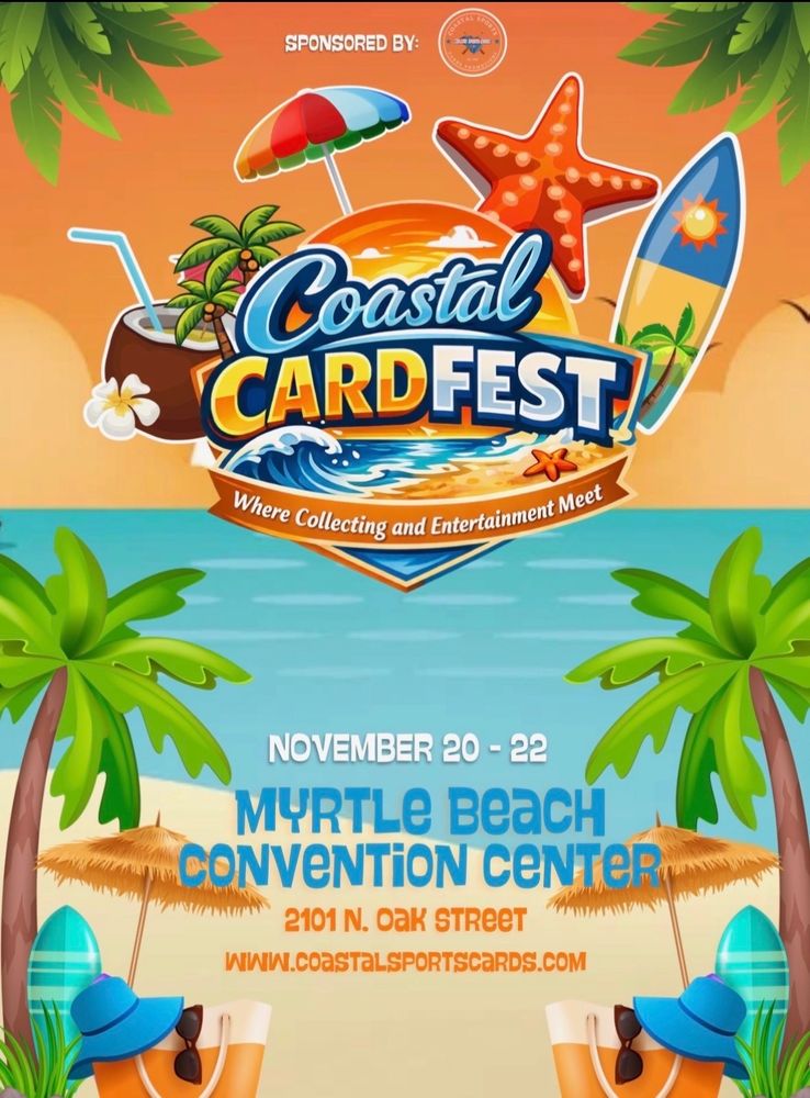 Coastal Card Fest is the ultimate collectibles experience—where the hobby comes alive. Dive into a high-energy show packed with live streaming, nonstop entertainment, surprise guest appearances, and endless tables of sports cards, TCG, comics, and so much more. Whether you’re a seasoned collector, a casual fan, or brand new to the scene, Coastal Card Fest brings the community together for unforgettable moments, exclusive finds, and the thrill of the chase—all under one roof. Don’t just collect it… experience it.